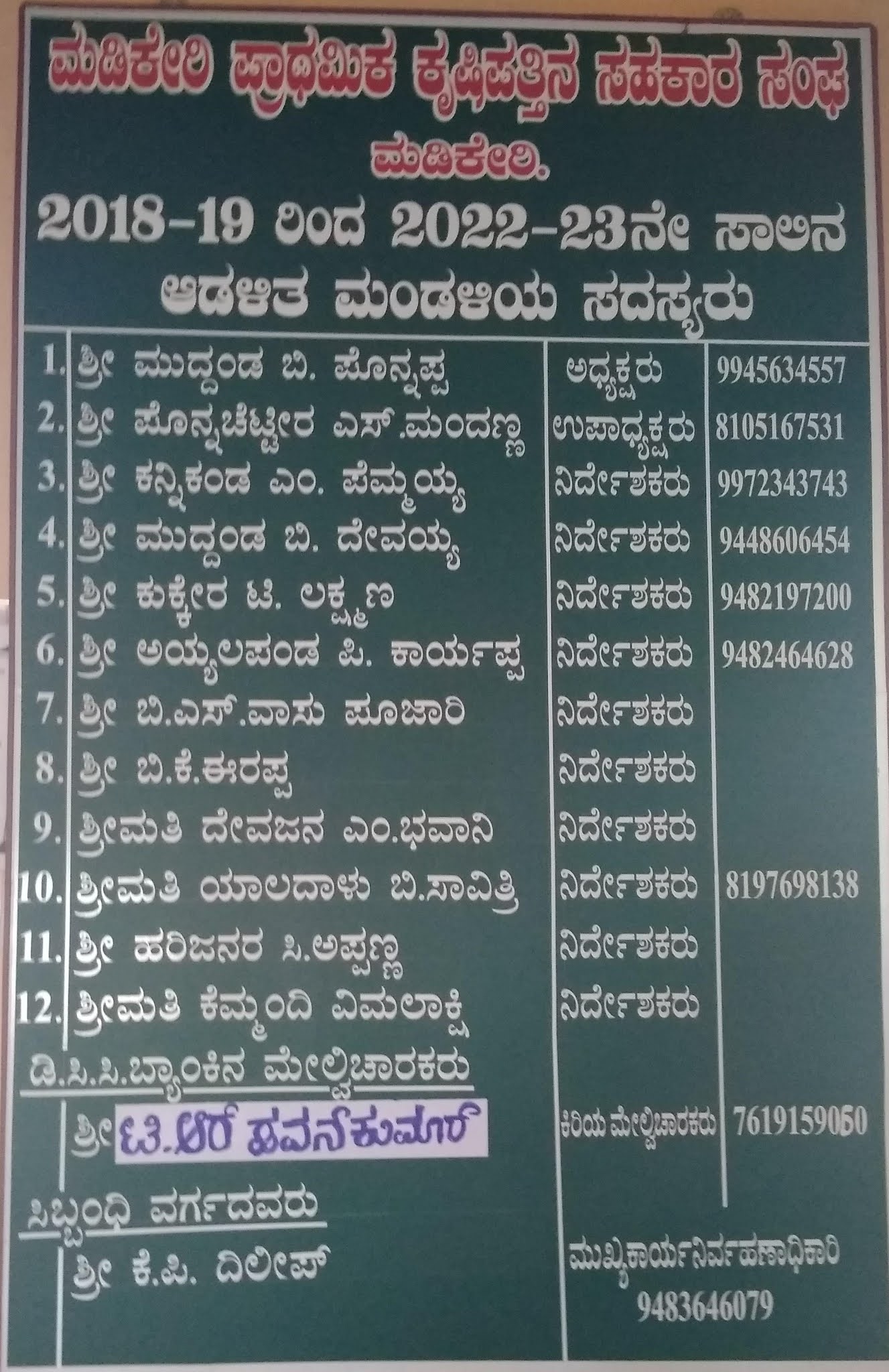 ಸಂಘದ ಹೆಸರು-ಮಡಿಕೇರಿ ಪ್ರಾಥಮಿಕ ಕೃಷಿ ಪತ್ತಿನ ಸಹಕಾರ ಸಂಘ ನಿ., ಮಡಿಕೇರಿ